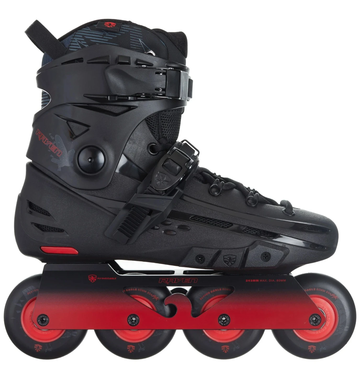 Upgrade your urban skating game with the Flying Eagle F4 Raven Skates in Black Fire —where performance meets style.