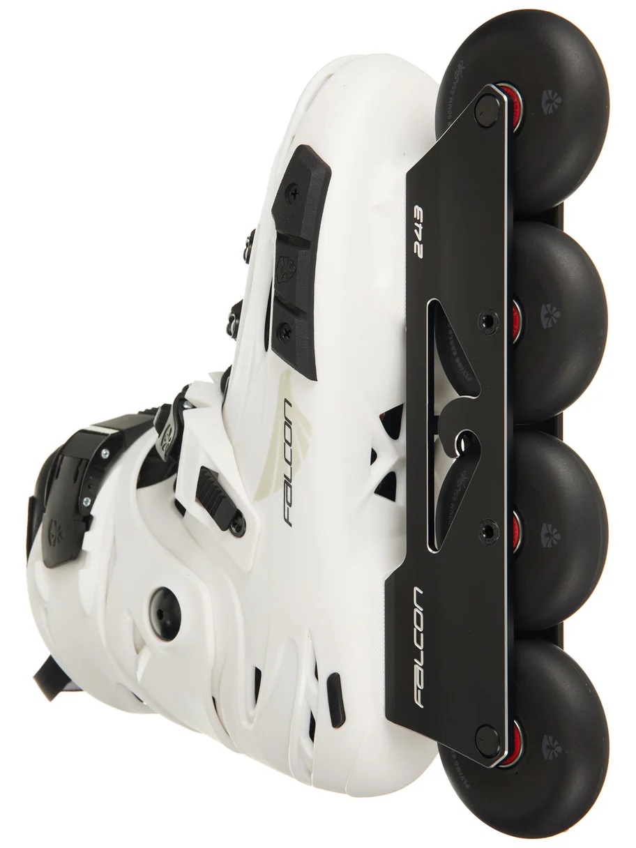 The Flying Eagle F6S Falcon Pro Skates - White are the ultimate choice for urban freestyle skaters seeking a perfect blend of durability, comfort, and performance. Designed with an emphasis on customization, these skates are equipped with Multi-Density LITE-FIT liners that provide excellent breathability and a neoprene toe for added comfort, especially for those in-between sizes. The PU leather uppers enhance the skate’s durability, while the strong, supportive cuffs ensure superior ankle support.