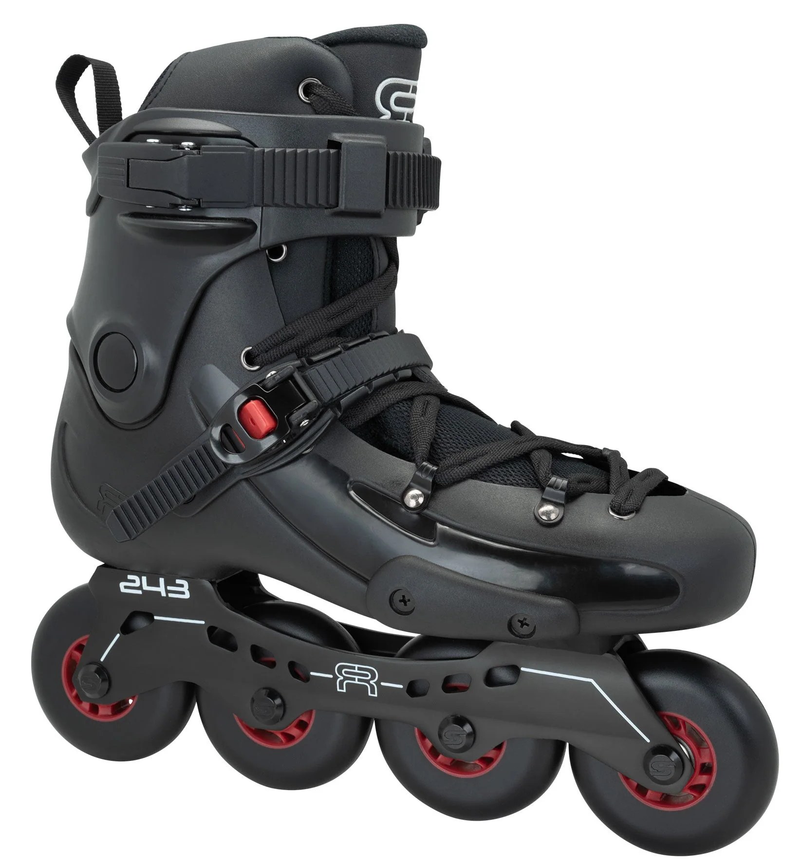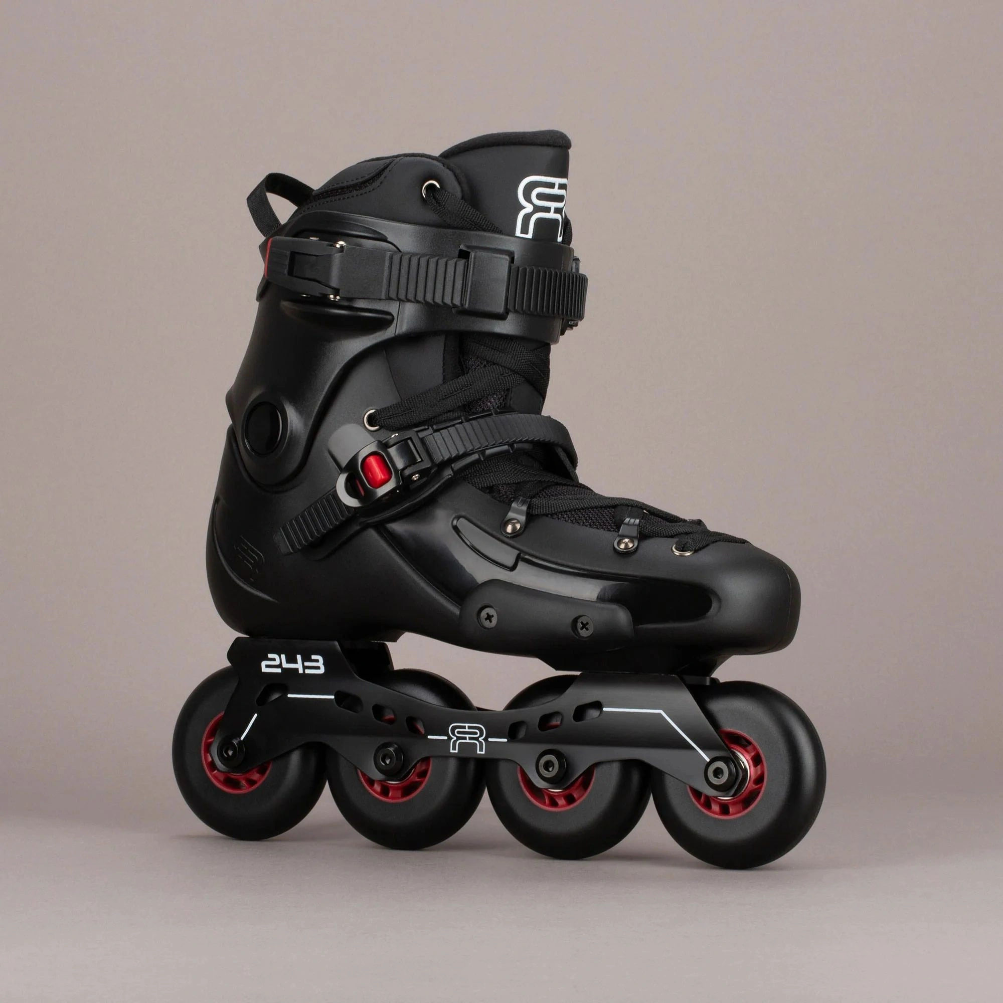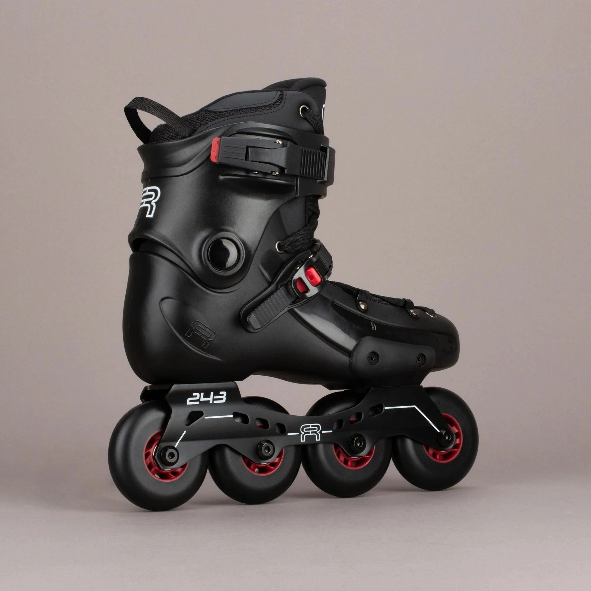 The FRXP Black / Red is a more affordable version of the popular FRX skate, featuring the same classic shell and liner but with a few differences. One of the main differences is the X-frame, which lacks a rockering system and uses double axles, but is still strong enough for urban skating. This makes the FRXP a great alternative for those who don't care about rockering but still want a reliable skate.