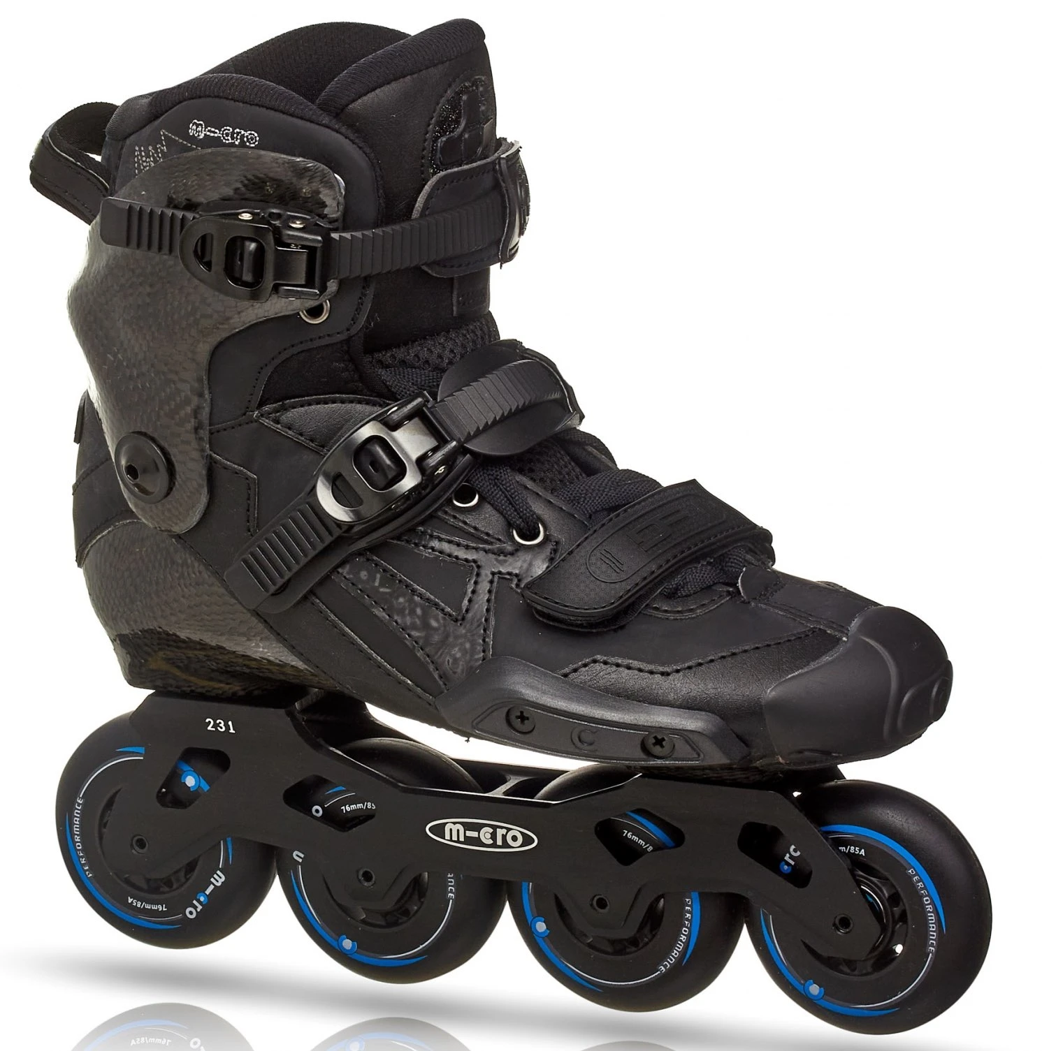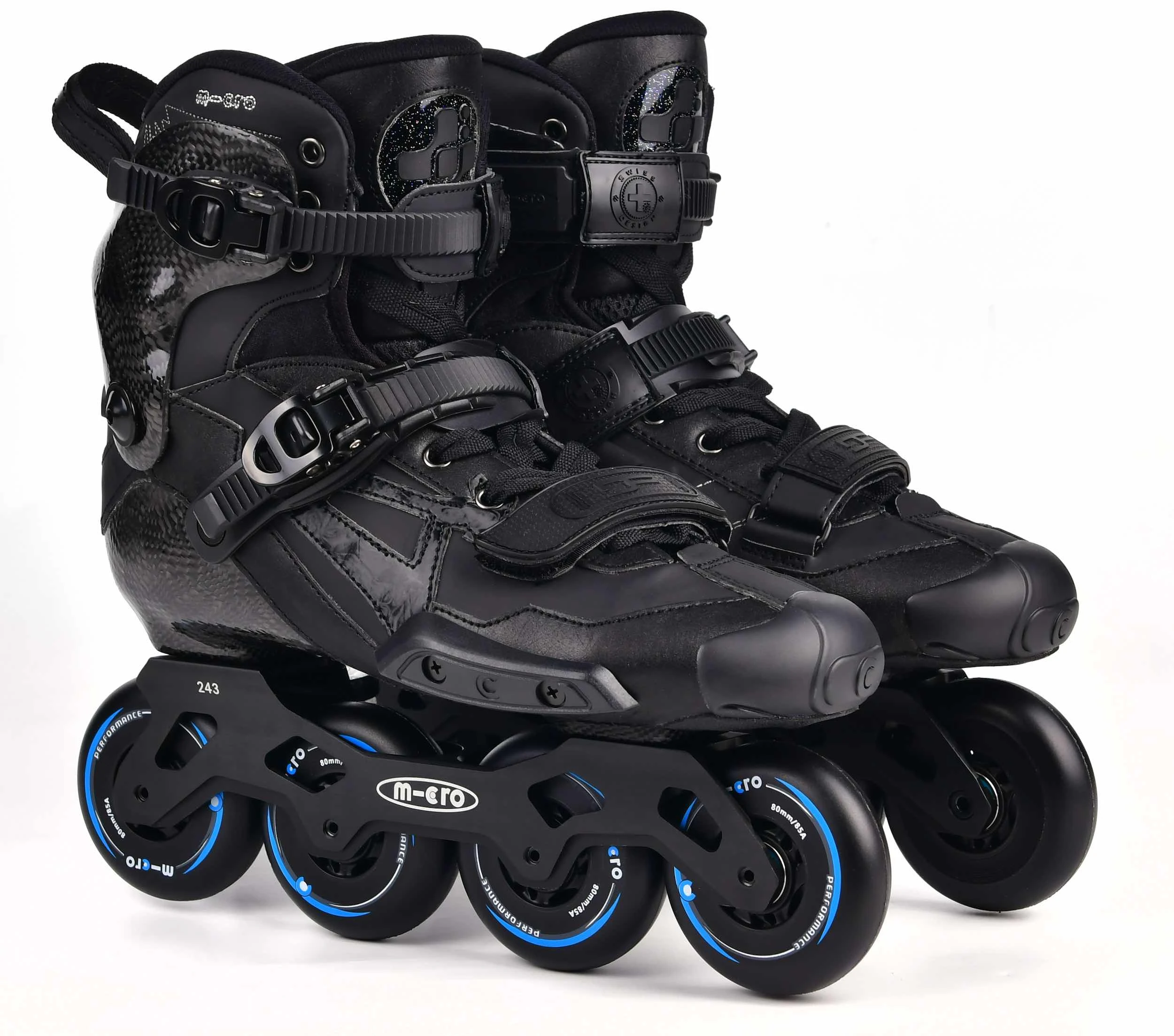- Rockered frame 7000 Series High-Quality Alum 243mm (or 231mm for size EU39 and below) - - Wheels 4*80MM/85A (or 76mm for sizes EU39 and below)