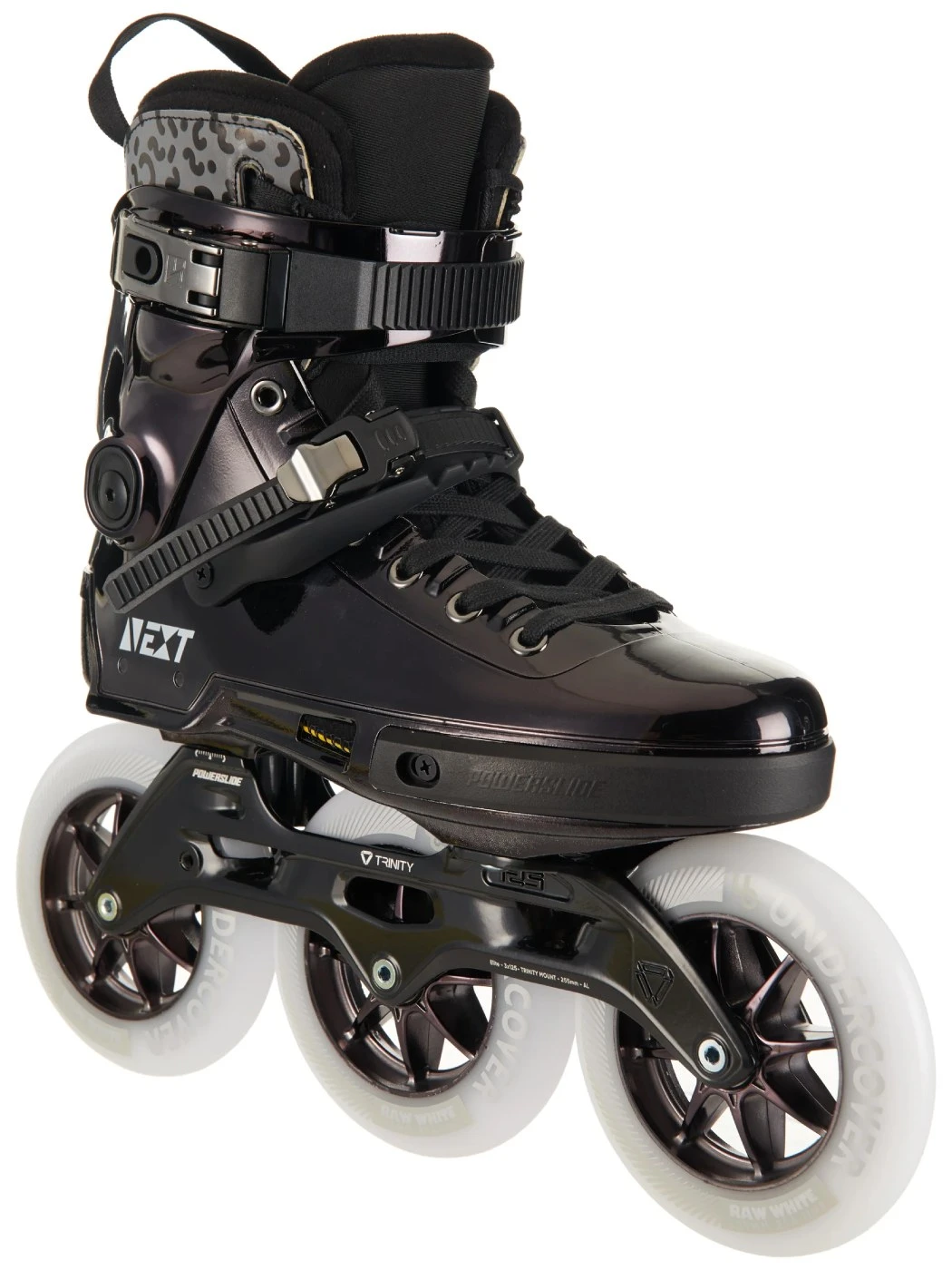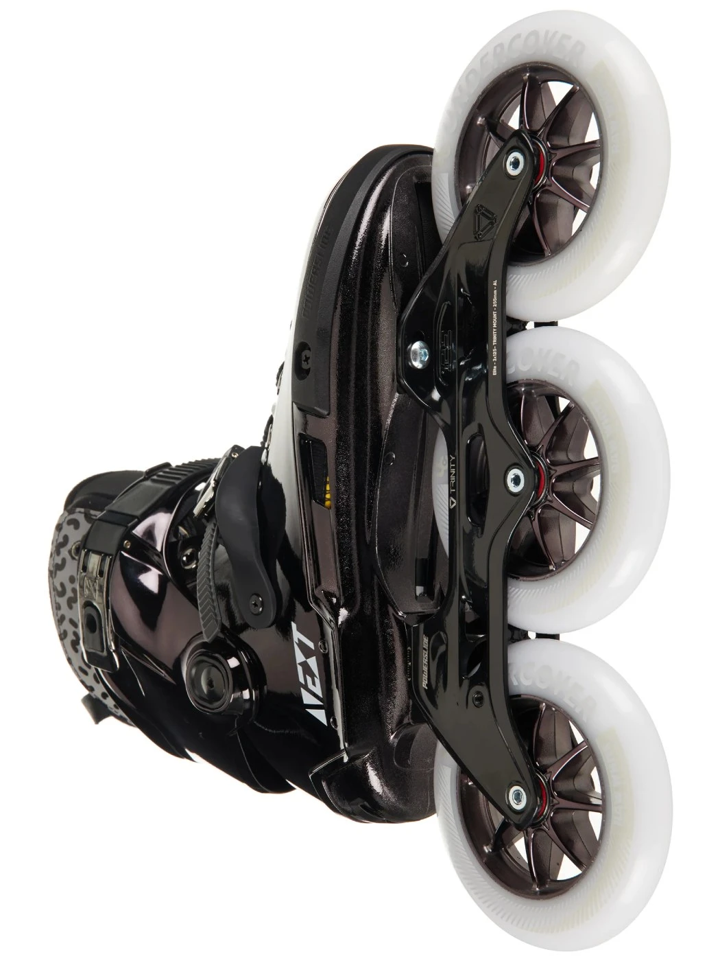 Built with ADC10 aluminum frames, crafted using a 3D cast process, they provide a precise shape and outstanding durability. The Trinity mounting system enhances stability, keeping you low to the ground even with large 3x125mm wheels, while also optimizing energy transfer with its three-point connection to key pressure zones in your feet.