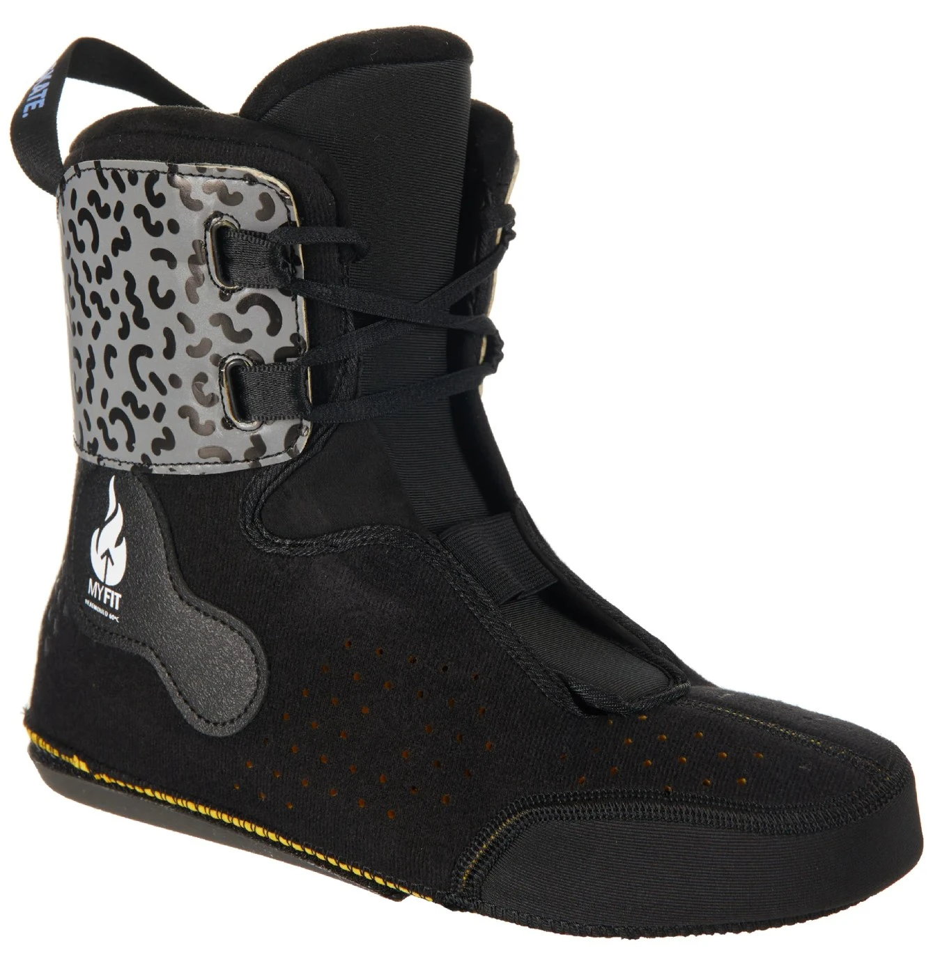 The Next boots are both strong and breathable, featuring strategically placed cutouts for airflow. Inside, the MyFit Prime Dual-Fit liners deliver a snug, customizable fit with heat-moldable properties. The liners also add a touch of personality with a playful squiggly print peeking through the boot.