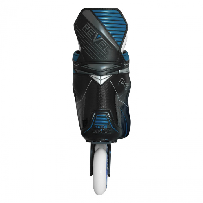 The quarter is constructed using Revel IX, which is capable of being heat-molded for up to 9 minutes. The quarter material is PU, while the eyelet facing is made of PVC. The liner material is brushed tricot, and the stiffness package is Pro. The outsole is TPR with a composite inlay, and the chassis is made of Rize Extruded 6000 Series Aluminum. There are two 76mm wheels in the front and two 80mm wheels in the back. The bearing type is Swiss Speed, and the wheel type is Xena Indoor 74A. The tongue is a two-piece 9mm felt material.
