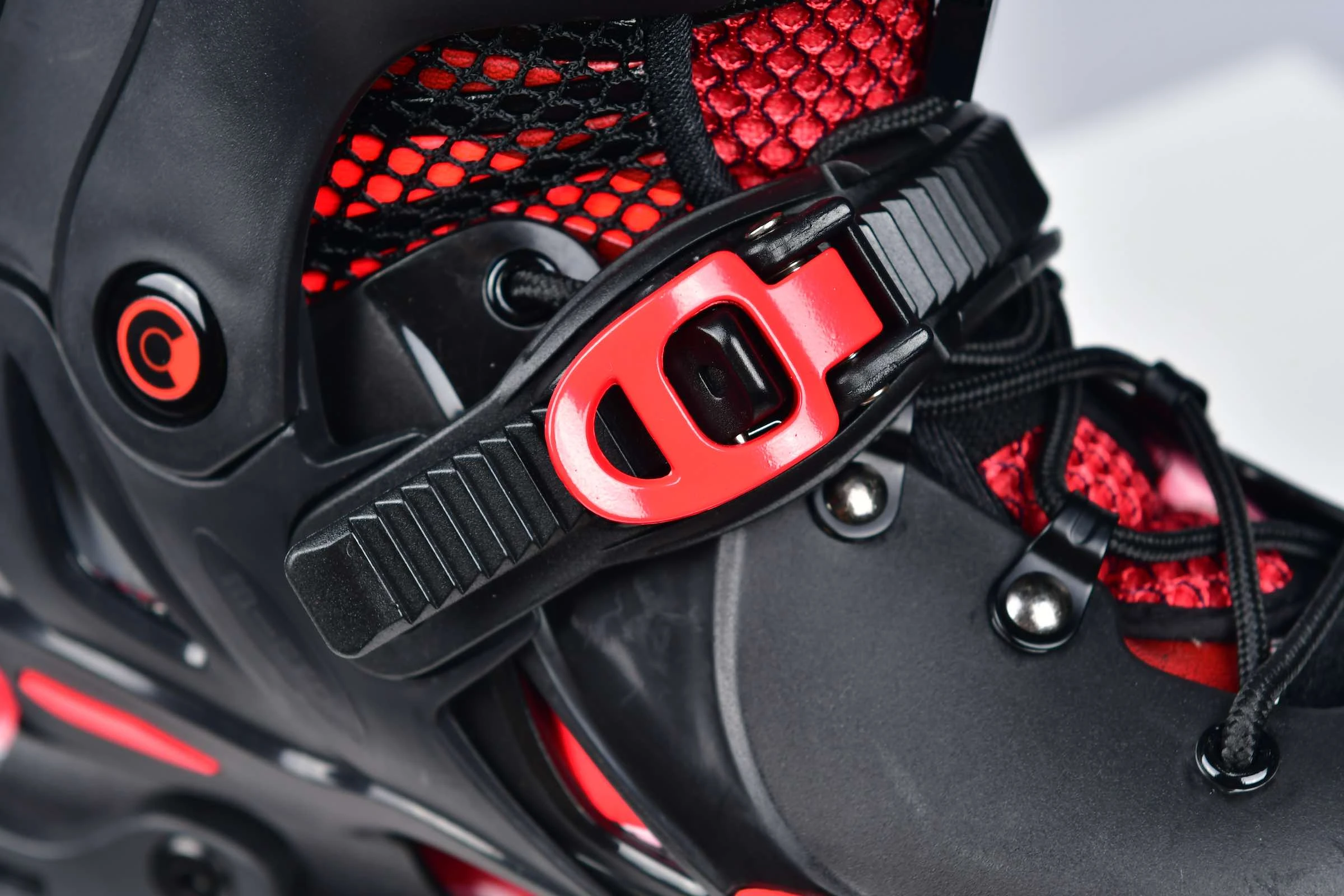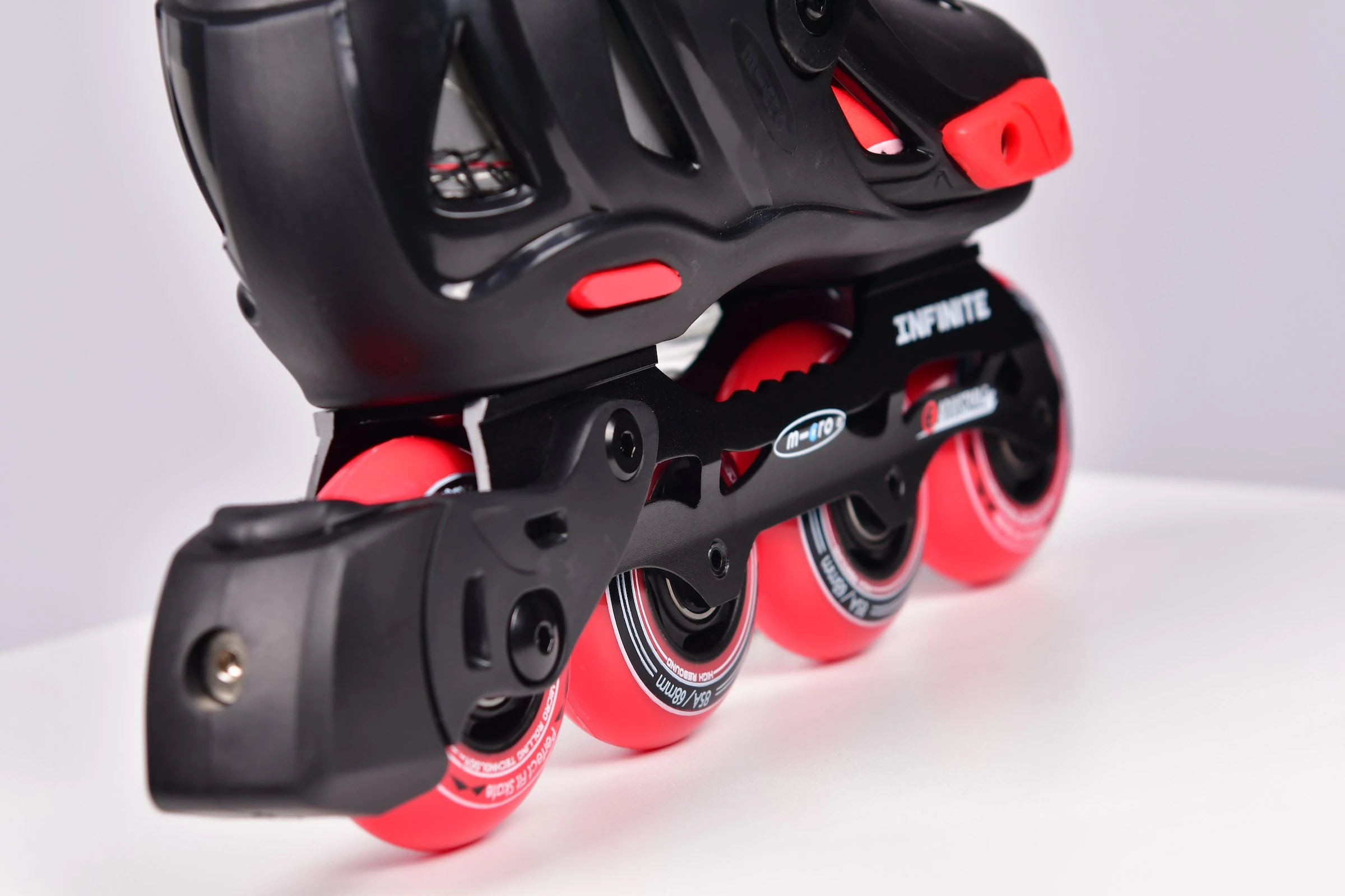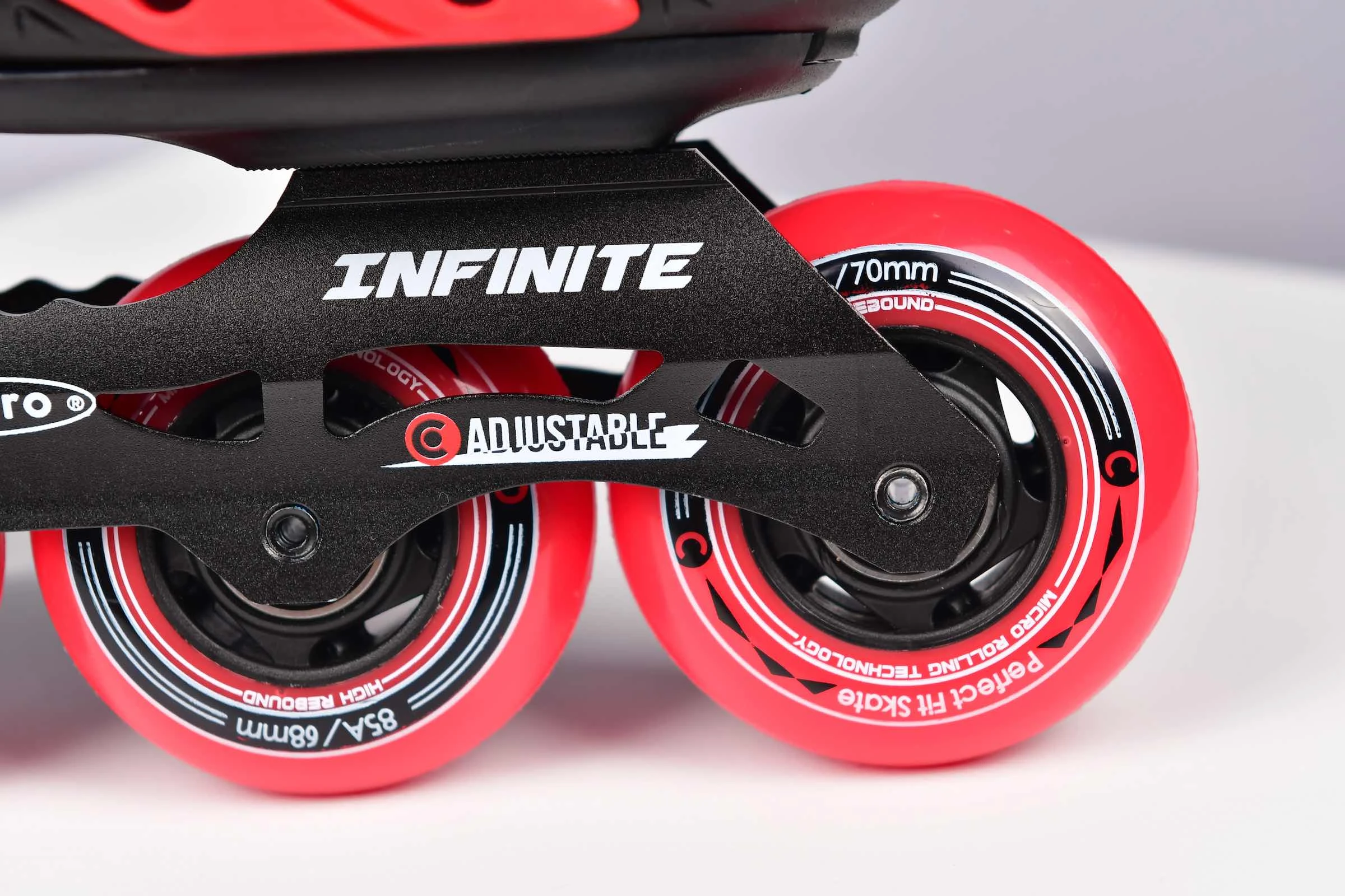 The Infinite kid's inline skate was designed and developed to offer more maneuverability. A high resistant polypropylene shell offers great maneuverability and good support yet still being very light in weight. A well-padded removable liner that could easily be washed by hand or machine. The fast buckle-up system makes it very easy for kids to put on their own skates. It also features a 45-degree ratchet strap to keep the foot in the correct place. A new reflective heel has been added that reflects in the light making kids more visible during night skate sessions.