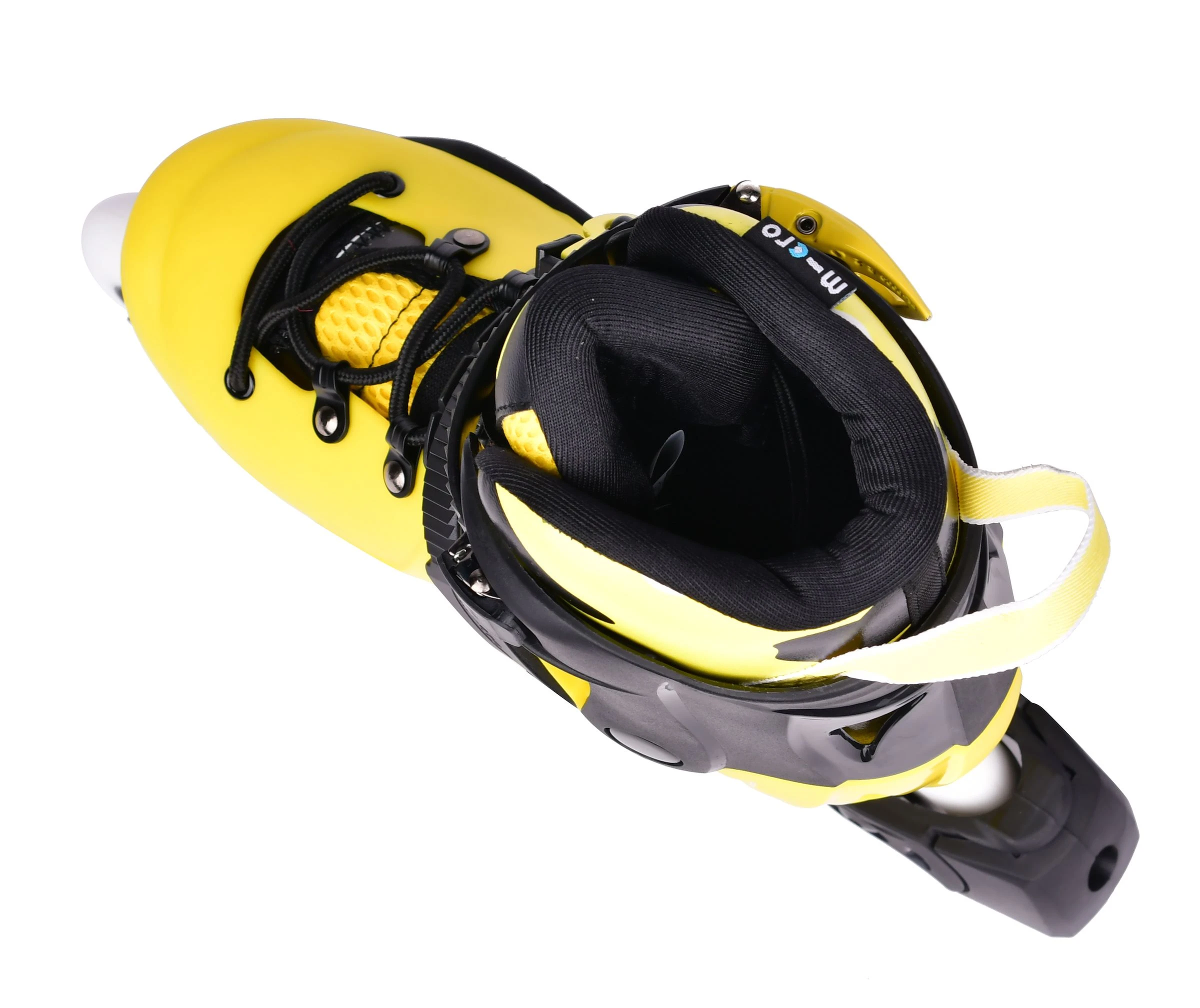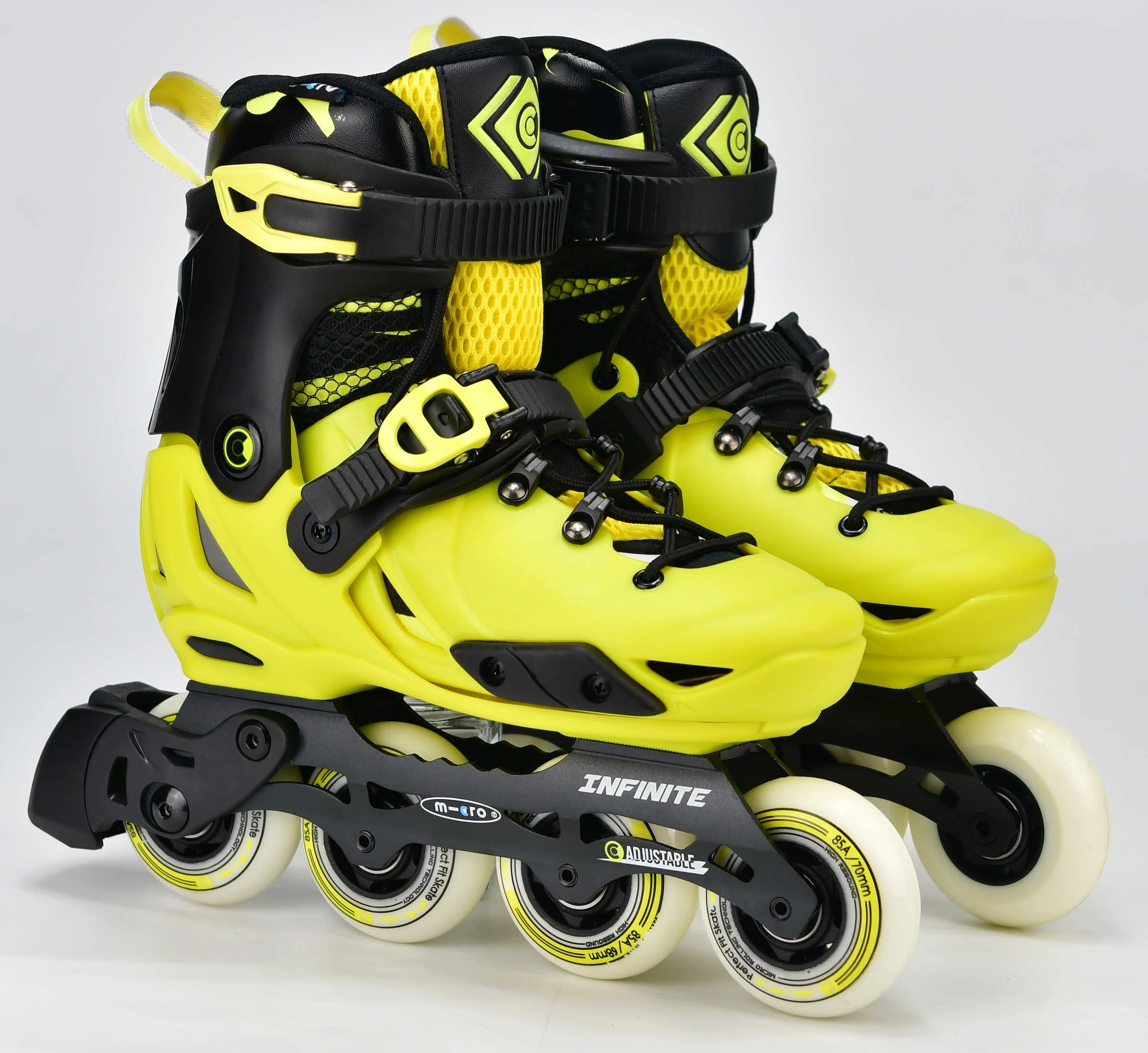 The Infinite kid's inline skate was designed and developed to offer more maneuverability. A high resistant polypropylene shell offers great maneuverability and good support yet still being very light in weight. A well-padded removable liner that could easily be washed by hand or machine. The fast buckle-up system makes it very easy for kids to put on their own skates. It also features a 45-degree ratchet strap to keep the foot in the correct place. A new reflective heel has been added that reflects in the light making kids more visible during night skate sessions.