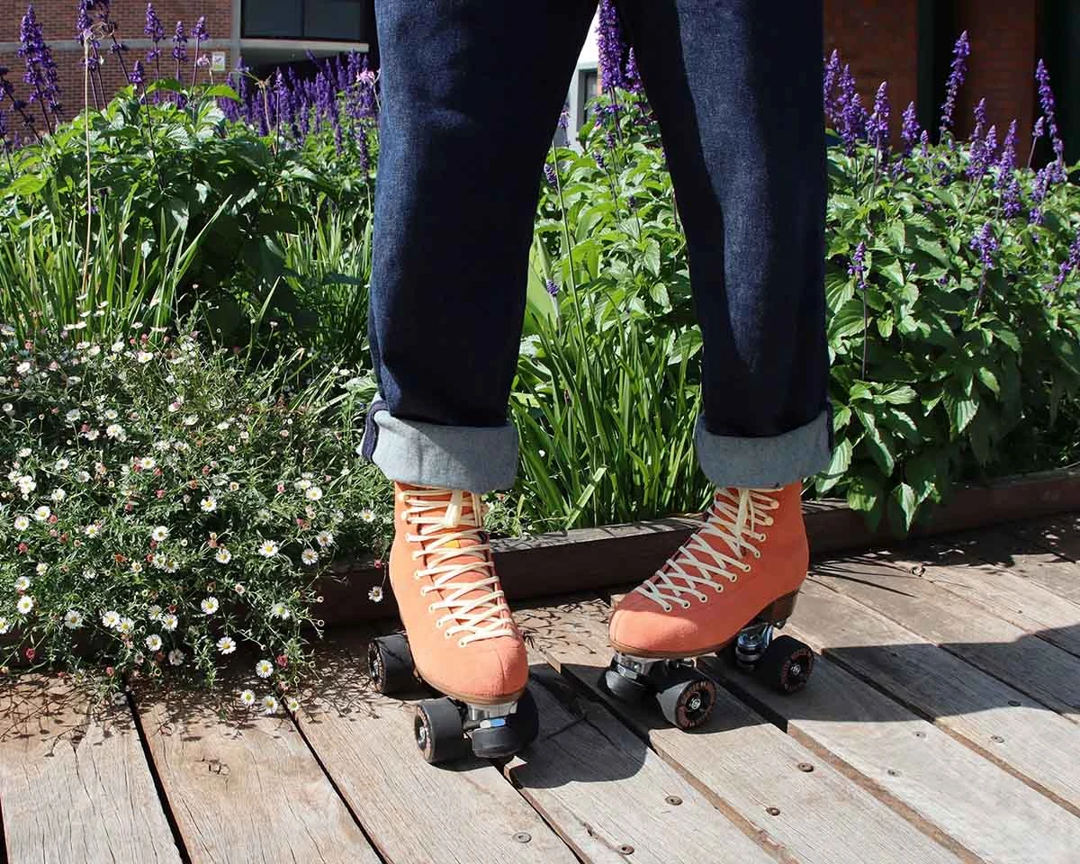 The Chuffed Skates Wanderer is for the roller skater who wants to roll wherever life takes them. From the street to the rink to the skatepark or the boardwalk. These roller skates feature a suede upper and padded lining for ultimate comfort and minimal break in period. The retro lining is inspired by the endless possibilities and curves of skate lines, and all the places you will wander on your skates. The Wanderer comes with an aluminium alloy plate, an adjustable toe stop, and 82a polyurethane wheels.